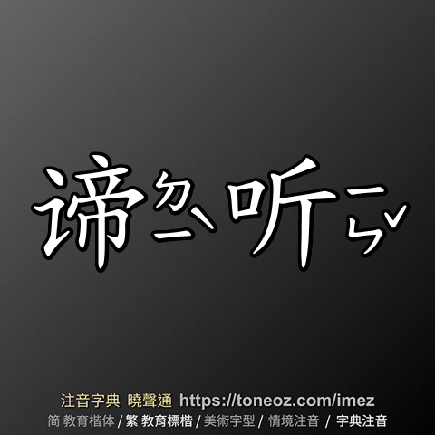 辭典解釋為:听,[副] 笑的樣子。《文選.司馬相如.上林賦》:「亡是公听然而笑。」唐.劉禹錫〈說驥〉:「睹之周體,眙然視,听然笑,既而抃隨之。」...