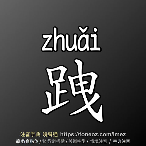 跩,注音ㄓㄨㄞˇ,拼音zhuǎi,辭典解釋為:1.搖晃不定的走路。例:鴨跩鵝行 2.得意忘形的樣子。例:他一有錢,就跩起來了。