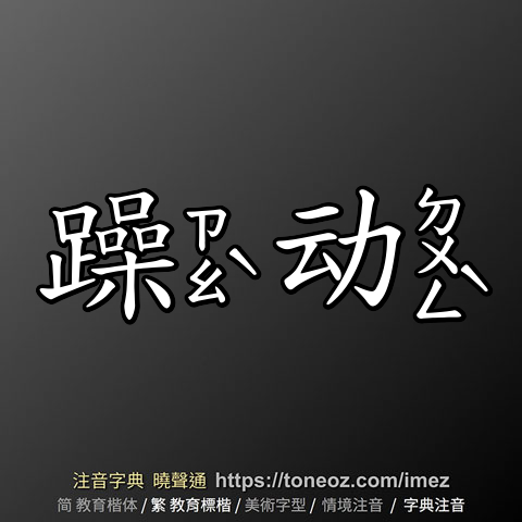 辭典解釋為:躁,1.性急、不冷靜。例:急躁、暴躁、躁進 2.動、擾動。例:稍安勿躁...