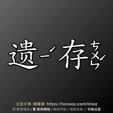 辭典解釋為:存,1.在、活著。例:和平共存、生死存亡 2.寄放、放置。例:寄存、存款 3.居有、懷有。例:存心不良、心存仁厚 4.保留、留下。例:存疑、去偽存真 5.慰問、關心。例:存恤、存候、存問...