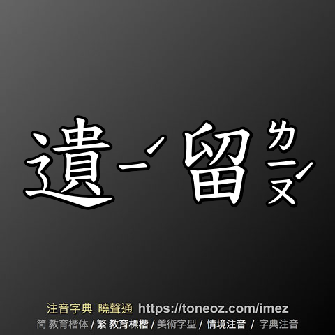遺留,注音ㄧˊ ㄌㄧㄡˊ,拼音yí liú,辭典解釋為:留下。例:祖父去世時遺留了不少書畫古董。