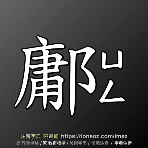 鄘,注音ㄩㄥ,拼音yōng,辭典解釋為:古國名。周代諸侯國,故址在今河南汲縣境內,周武王封管叔監殷於此。