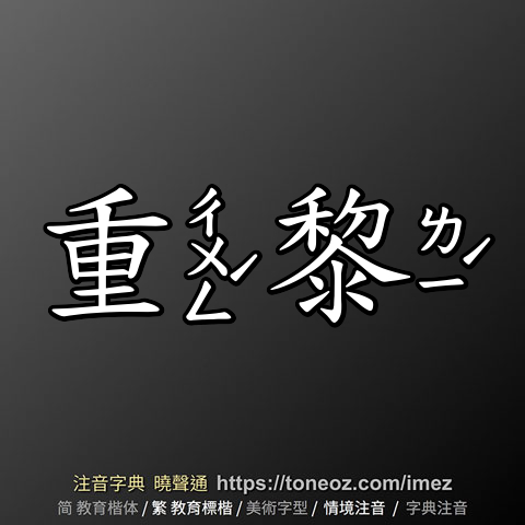 重黎,注音ㄔㄨㄥˊ ㄌㄧˊ,拼音chóng lí,辭典解釋為:職官名。古時掌天地四時的官。相傳顓頊時重氏司天,黎氏司地。