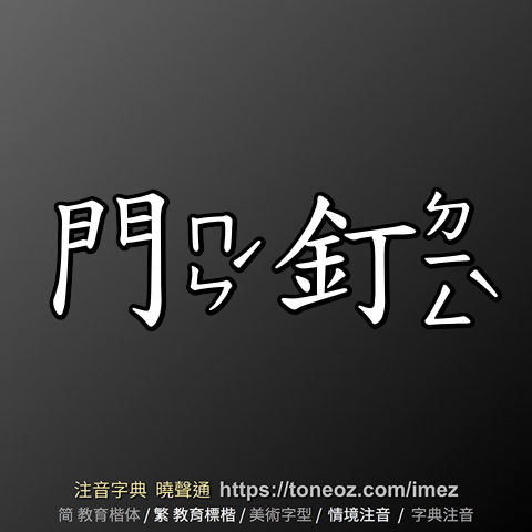 辭典解釋為:門,1.建築物或車、船等可以開關的出入口,也指設於出入口能關閉的裝置。例:房門、車門、鐵捲門 2.形狀或作用像門的物體。例:閘門、水門、肛門 3.家族、門第。例:寒門、豪門 4.學派、宗派。例:佛門、獨門絕活 5.關鍵、要點、方法。例:竅門、不二法門 6.類別。例:分門別類、五花八門 7.生物學上分類系統所用的等級之一。例:脊椎動物門 8.量詞:(1) 計算學科、技藝門類的單位。例:一門功課、兩門技術 (2) 計算大炮的單位。例:三門大炮 (3) 計算親戚家數的單位。例:他有兩門親戚。 9.姓。...