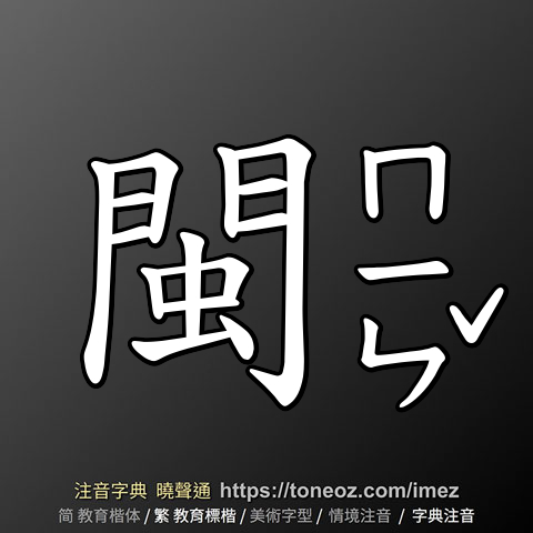 閩,注音ㄇㄧㄣˇ,拼音mǐn,辭典解釋為:福建省的簡稱。例:閩南