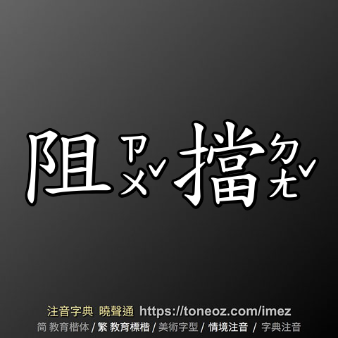 阻擋 - 教育字典 快速核校注音 曉聲通