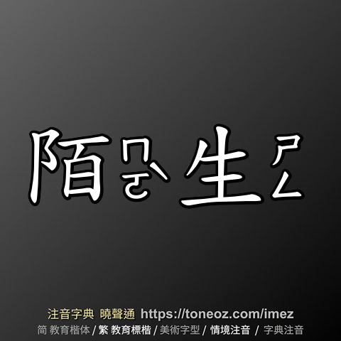 陌生,注音ㄇㄛˋ ㄕㄥ,拼音mò shēng,辭典解釋為:不認識或不熟悉的。例:這個人看起來很陌生,一定不是本地人。