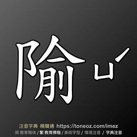 隃,注音ㄩˊ,拼音yú,辭典解釋為:參見「隃麋」條。