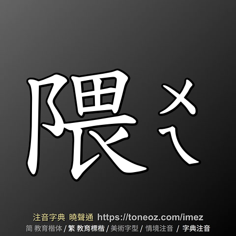 隈,注音ㄨㄟ,拼音wēi,辭典解釋為:1.山或水流彎曲的地方。例:山隈水涯 2.角落。例:牆隈、四隈