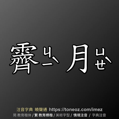 霽月,注音ㄐㄧˋ ㄩㄝˋ,拼音jì yuè,辭典解釋為:1.雨後的明月。《大宋宣和遺事.元集》:「大概風光霽月之時少,陰雨晦冥之時多。」 2.比喻開朗的胸襟。《宋史.卷四二七.道學傳一.周敦頤傳》:「胸懷灑落,如光風霽月。」