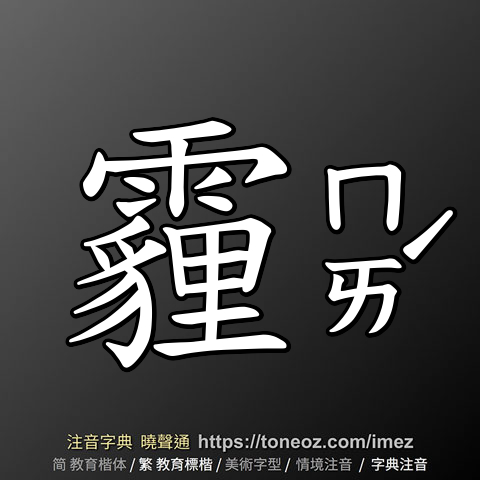 霾,注音ㄇㄞˊ,拼音mái,辭典解釋為:懸浮在空氣中的煙、塵等微粒聚集形成的昏暗現象。例:天空一片陰霾。