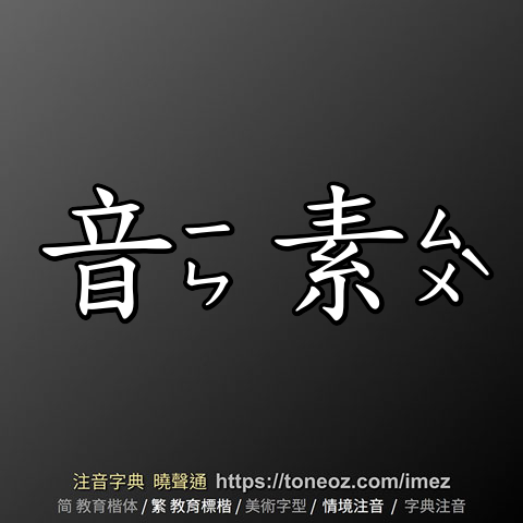 音素,注音ㄧㄣ ㄙㄨˋ,拼音yīn sù,辭典解釋為:語音中最小的單位。如漢語音節ā(啊)只有一個音素,ài(愛)有兩個音素,dāi(呆)有三個音素等。音素可以分元音、輔音兩大類。