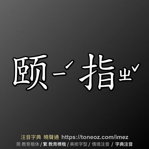辭典解釋為:指,1.手掌或腳掌前端分支的部分。例:手指、腳指、無名指 2.以手指或物的尖端點出方向。例:指著鼻子、指著黑板、時針指著一點  3.點明、示知。例:指正、指導 4.意思的趨向。例:這個詞的意思是指抽象的事物而言。 5.(頭髮)直立向天。例:令人髮指 6.仰仗、依賴。例:指望、指靠 7.一個手指的寬度。例:這鞋大了點,還剩兩指寬。...
