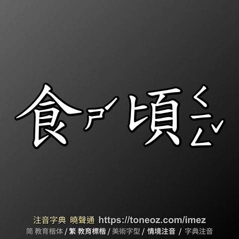食頃,注音ㄕˊ ㄑㄧㄥˇ,拼音shí qǐng,辭典解釋為:吃一頓飯的功夫。形容時間很短。《史記.卷七五.孟嘗君傳》:「出如食頃,秦追果至關,已後孟嘗君出,乃還。」《聊齋志異.卷四.促織》:「食頃,簾動,片紙拋落。」