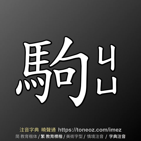 駒,注音ㄐㄩ,拼音jū,辭典解釋為:1.兩歲的馬,亦泛指小馬或幼獸。例:駒犢、虎豹之駒 2.良馬、駿馬。例:千里之駒