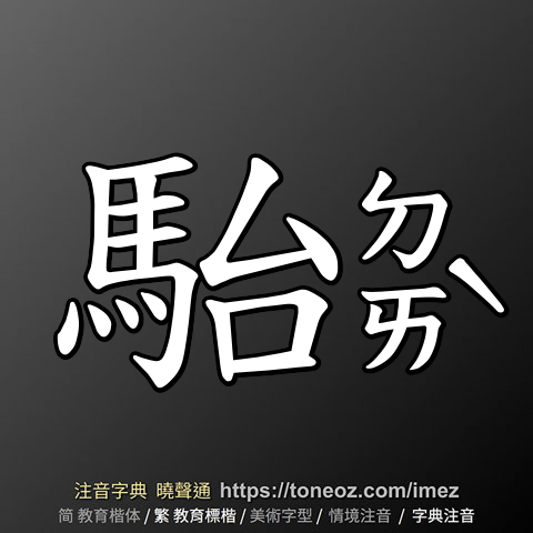 駘,注音ㄊㄞˊ,拼音tái,辭典解釋為:劣馬。比喻庸才。例:駑駘