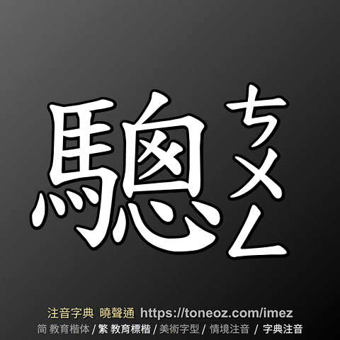 驄,注音ㄘㄨㄥ,拼音cōng,辭典解釋為:[名] 毛色青白相雜的馬。《說文解字.馬部》:「驄,馬青白雜毛也。」唐.李白〈長干行〉二首之二:「行人在何處,好乘浮雲驄。」