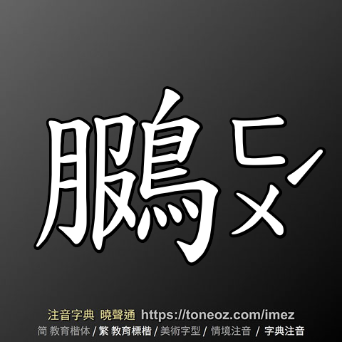 鵩,注音ㄈㄨˊ,拼音fú,辭典解釋為:[名] 一種鳥。形似鴞,夜發出惡聲,古人以為不祥之鳥。