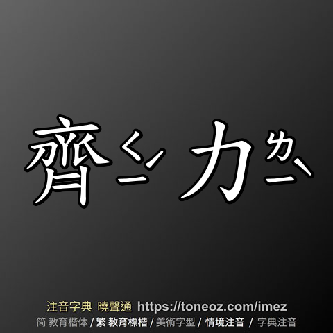 齊力 - 教育字典 快速核校注音 曉聲通