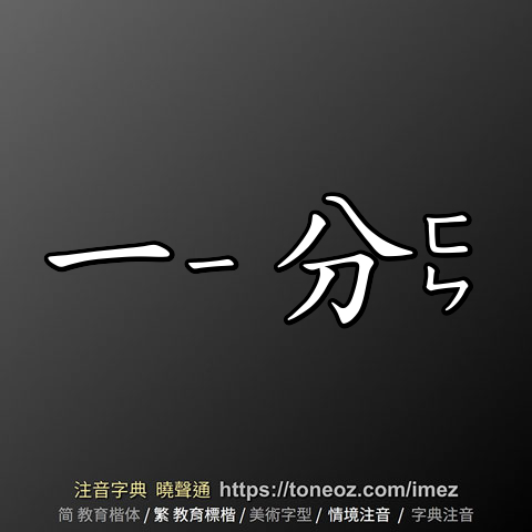一分,注音ㄧ ㄈㄣ,拼音yī fēn,辭典解釋為:1.百分之一尺的長度。《漢書.卷二一.律曆志上》:「一為一分,十分為寸,十寸為尺。」 2.十二分之一銖的重量。《淮南子.天文》:「其以為量,十二粟而當一分,十二分而當一銖。」 3.六十分之一小時的時間。 4.全體的一部分。 5.極微小的數量,少許。《文選.宋王.登徒子好色賦.序》:「東家之子,增之一分則太長,減之一分則太短,施粉則太白,施朱則太赤。」