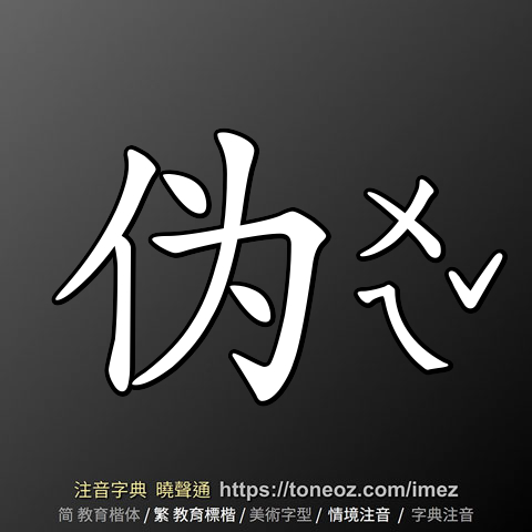 伪 的解釋及造詞。曉聲通注音編輯器