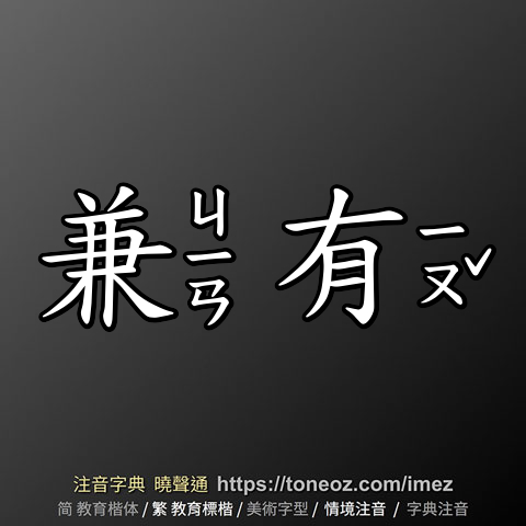 兼有 的解釋及造詞。曉聲通注音編輯器