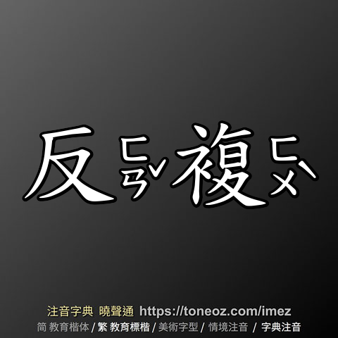 辭典解釋為:反,1.翻轉、顛倒。例:反敗為勝、易如反掌 2.背向自己方向的,或具消極、否定、異常意義的。與「正」相對。例:反面、反義、反常 3.不贊成,持抗議立場的。例:反核、反汙染 4.回、還。例:反省、反求諸己 5.出於正常判斷之外的。例:反而、畫虎不成反類犬 6.翻案。例:平反...