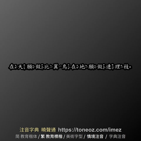 在天願做比翼鳥在地願做連理枝 的解釋及造詞。曉聲通注音編輯器