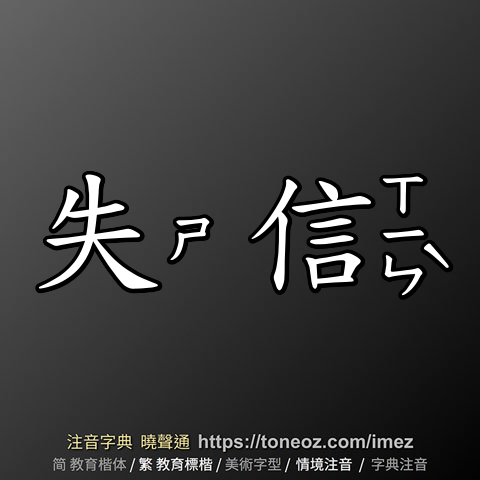 失信,注音ㄕ ㄒㄧㄣˋ,拼音shī xìn,辭典解釋為:不守信用。例:常常失信的人,將無法立足於社會。
