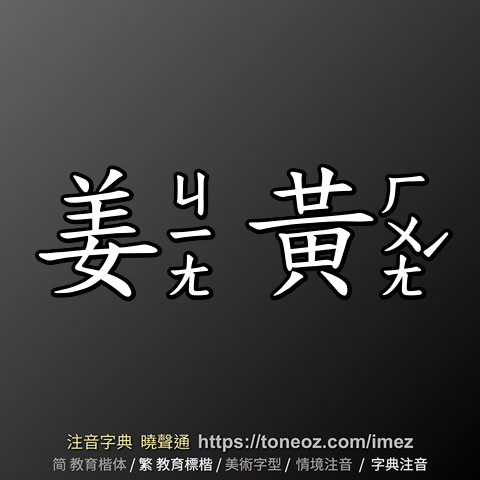 姜黃 的解釋及造詞。曉聲通注音編輯器