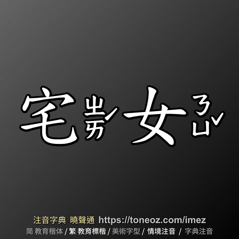 宅女 的解釋及造詞。曉聲通注音編輯器