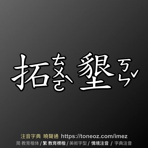 辭典解釋為:拓,開展、開闢。例:開拓、拓展、拓荒...