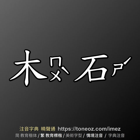 木石,注音ㄇㄨˋ ㄕˊ,拼音mù shí,辭典解釋為:1.木和石。如:「他的度假小屋,木石環繞,甚為幽靜。」《孟子.盡心上》:「舜之居深山之中,與木石居。」《山海經・北山經》:「炎帝少女名曰女娃,女娃游于東海,溺而不返,故為精衛,常銜西山之木石,以堙于東海。」 2.比喻沒有知覺、感情。如:「心非木石,見人苦難,當伸援手才是。」漢.司馬遷〈報任少卿書〉:「身非木石,獨與法吏為伍。深出囹圄中,誰可告愬者!」《宋書.卷八三.列傳.吳喜》:「人非木石,何能不感。」