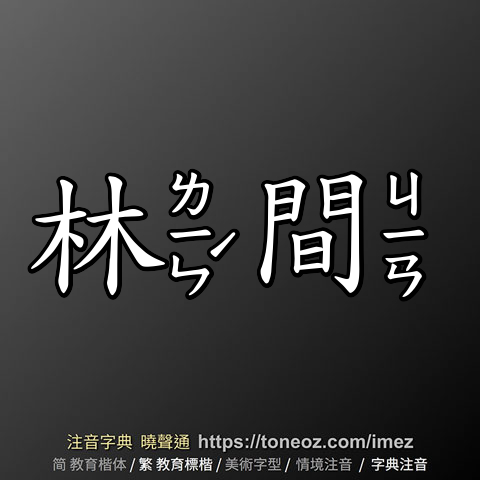 辭典解釋為:林,1.樹木或竹子叢生的地方。例:竹林、松林、防風林