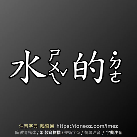 辭典解釋為:水,1.一種無色無味的液體。由氫氣與氧氣化合而成。例:冰水、熱水、白開水 2.汁、液。例:墨水、藥水、檸檬水 3.海、河、江、湖的泛稱。例:漢水 4.五行之一。 5.量詞。計算衣物刷洗次數的單位。例:這件衣服洗兩水就走樣了。 6.姓。...