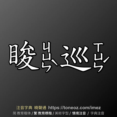 辭典解釋為:睃巡,英English: (eyes) to scan, to glance left and right, to scrutinize, also written 巡睃[xun2 suo1]...
