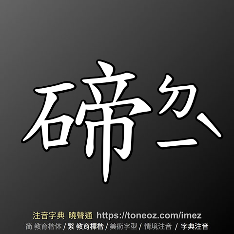 碲,注音ㄉㄧˋ,拼音dì,辭典解釋為:[名] (tellurium,Te)化學元素。原子序52。類金屬元素之一。不易傳熱但可導電,具金屬性質。溶於濃硫酸、硝酸、氫氧化鉀及氰化鉀等溶液,但不溶於水。為銀白色柱狀的結晶體,質脆,具金屬光澤,或為灰棕色的粉末。以二氧化硫還原其氧化物可得碲。金屬和合金中加少量碲,可改進機械性能及增強硬度。鉛含少量的碲,可製電纜及化工設備的保護層。碲和若干碲化合物則可為半導體材料。