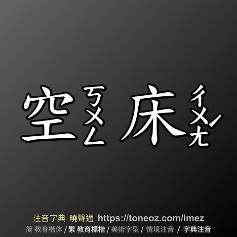 空床 的解釋及造詞。曉聲通注音編輯器