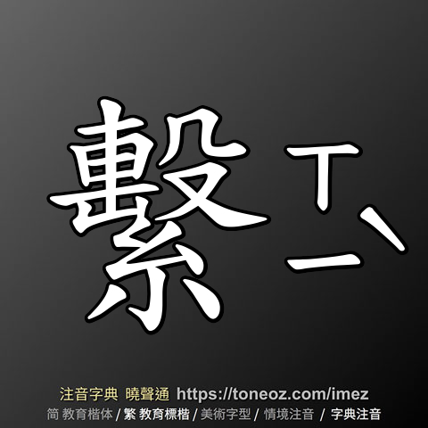 繫,注音ㄒㄧˋ,拼音xì,辭典解釋為:1.拴住、綑綁。例:繫馬、繫頸、繫足 2.聯綴、連接。例:聯繫、維繫 3.留意、牽掛。例:繫念、繫懷、繫心 4.逮捕、監禁。例:繫囚、繫獄