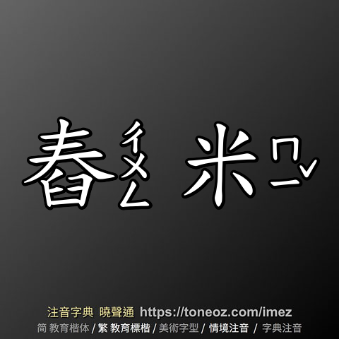 舂米 的解釋及造詞。曉聲通注音編輯器