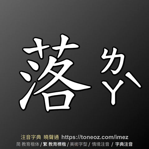 辭典解釋為:落,1.脫離、下墜。例:脫落、降落