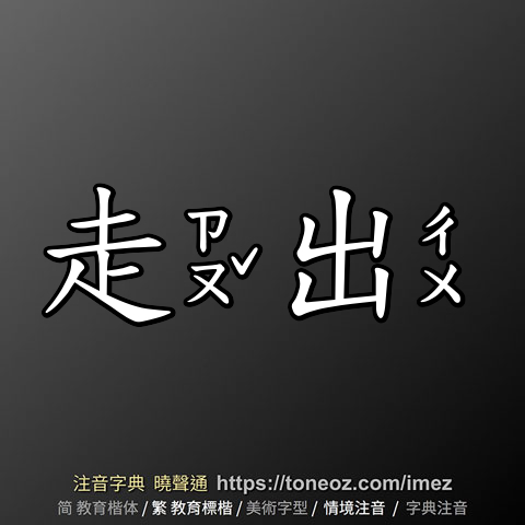 辭典解釋為:走出,英English: to leave (a room etc) to go out through (a door etc)...