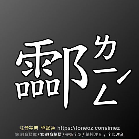 酃,注音ㄌㄧㄥˊ,拼音líng,辭典解釋為:參見「酃淥」、「酃湖」、「酃縣」等條。