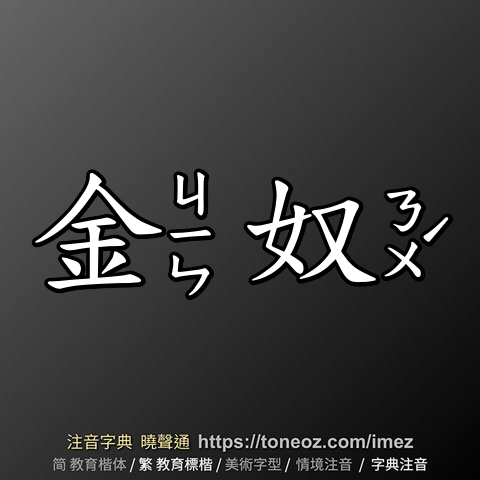 金奴 的解釋及造詞。曉聲通注音編輯器